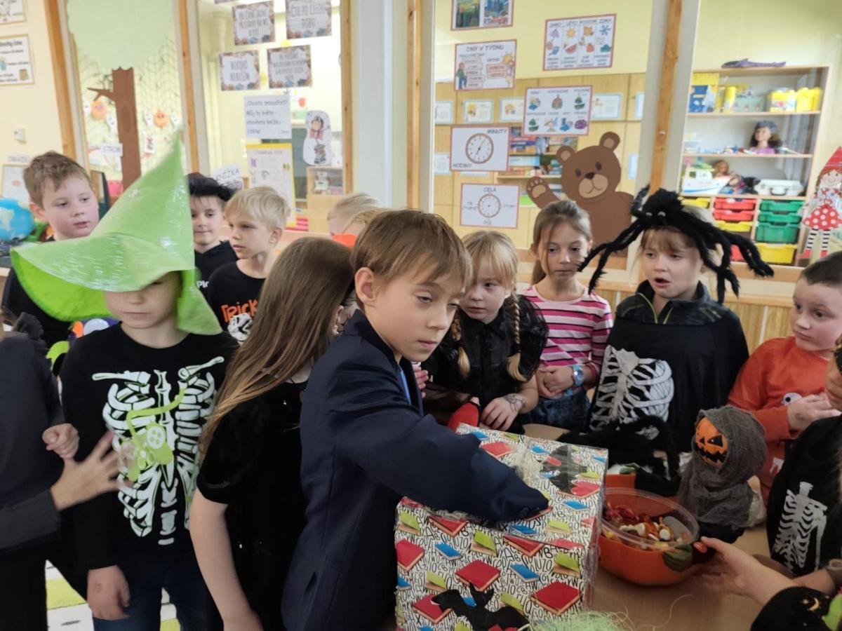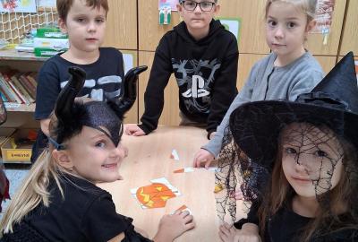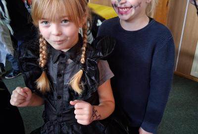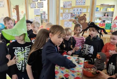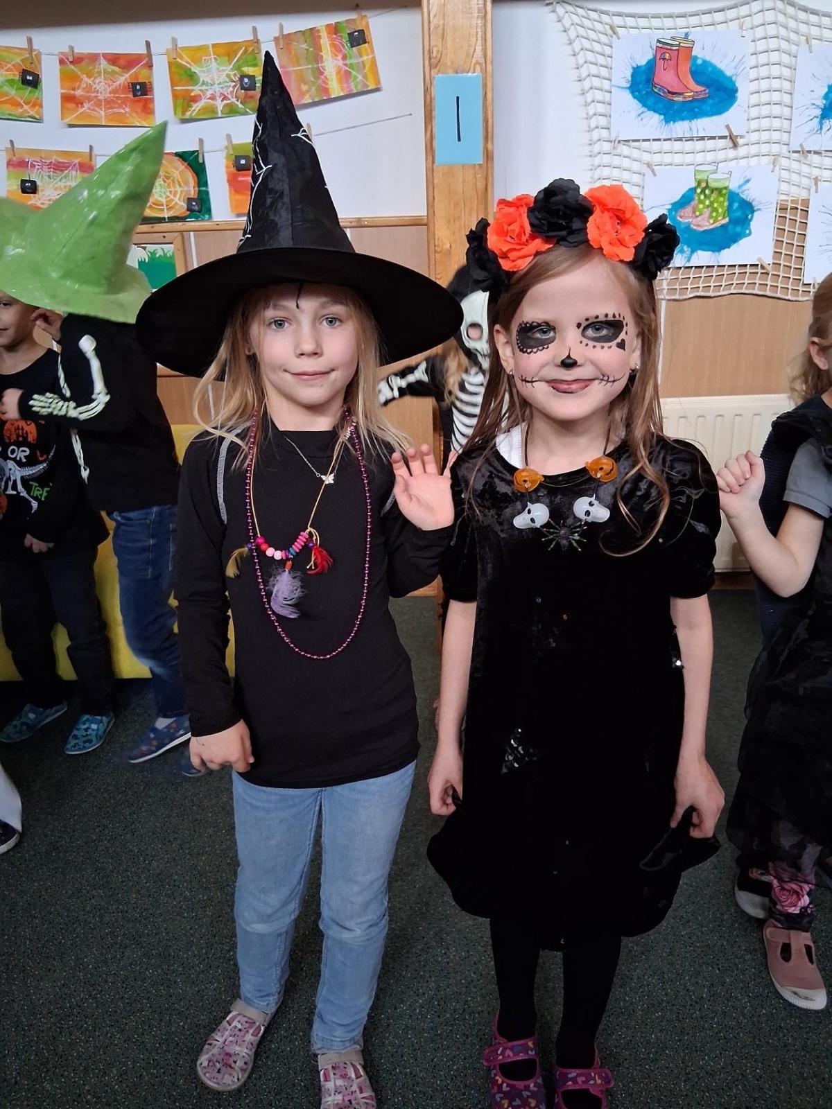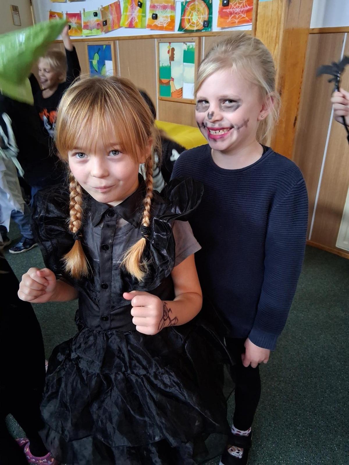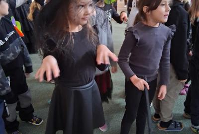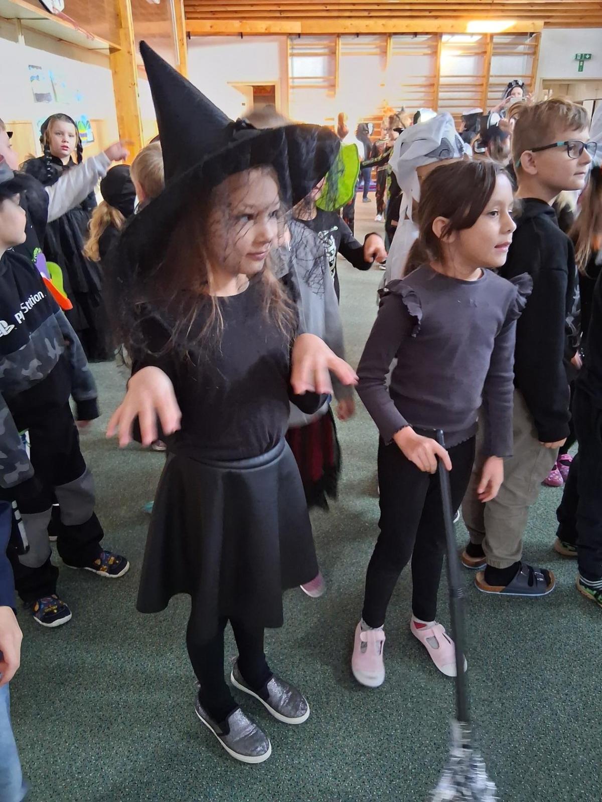 Už od rána se to u nás hemžilo čarodějnicemi, čaroději, strašidly, kostlivci a duchy. Všichni plnili různé úkoly v pracovním listu, vyráběli strašidelné prstové loutky a díky jedné mamince si vybarvili i sádrové odlitky s halloweenskou tematikou. Došlo na promenádu všech tříd v maskách i na společný tanec. Pak se děti ve skupinkách vypravily plnit postupně různé úkoly do všech tříd v pavilonku. Čekalo je překonávání pavučinové dráhy, přenášení „oka“ na lžíci určenou trasou i týmové skládání strašidelných obrázků. A kdo se nebál, mohl rukou zkoumat roztodivné předměty schované v krabici. Za to si mohl vzít želé pavouka od šklebící se čarodějnice. Užili jsme si hlavně spoustu legrace a to je dobře, protože smích je vždycky potřeba.