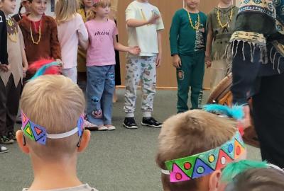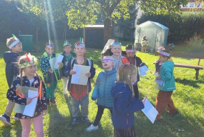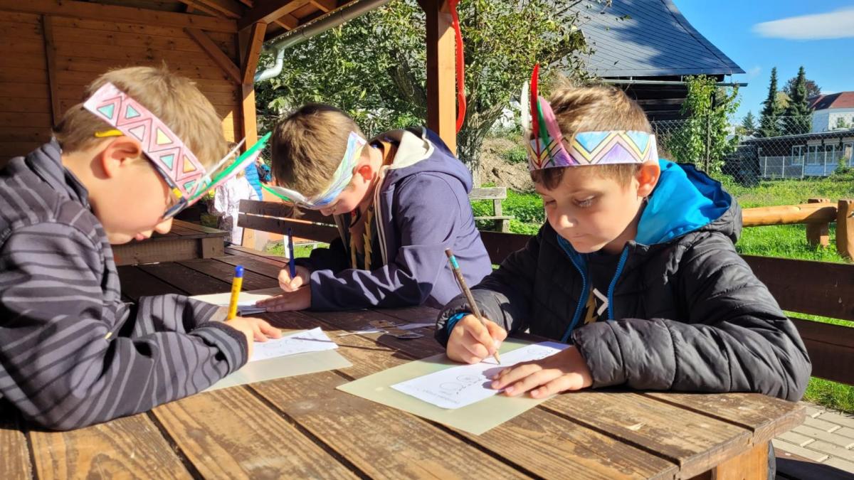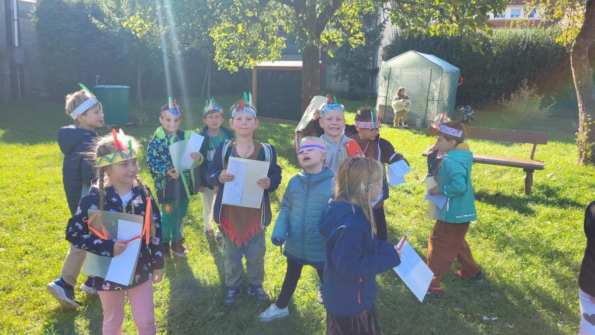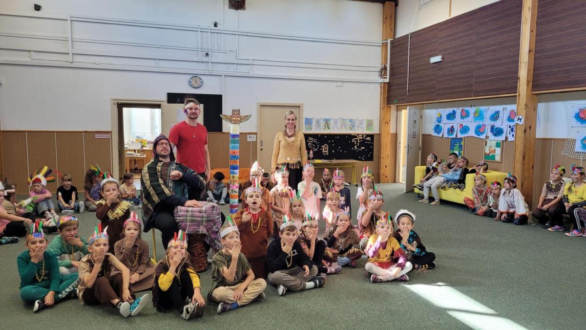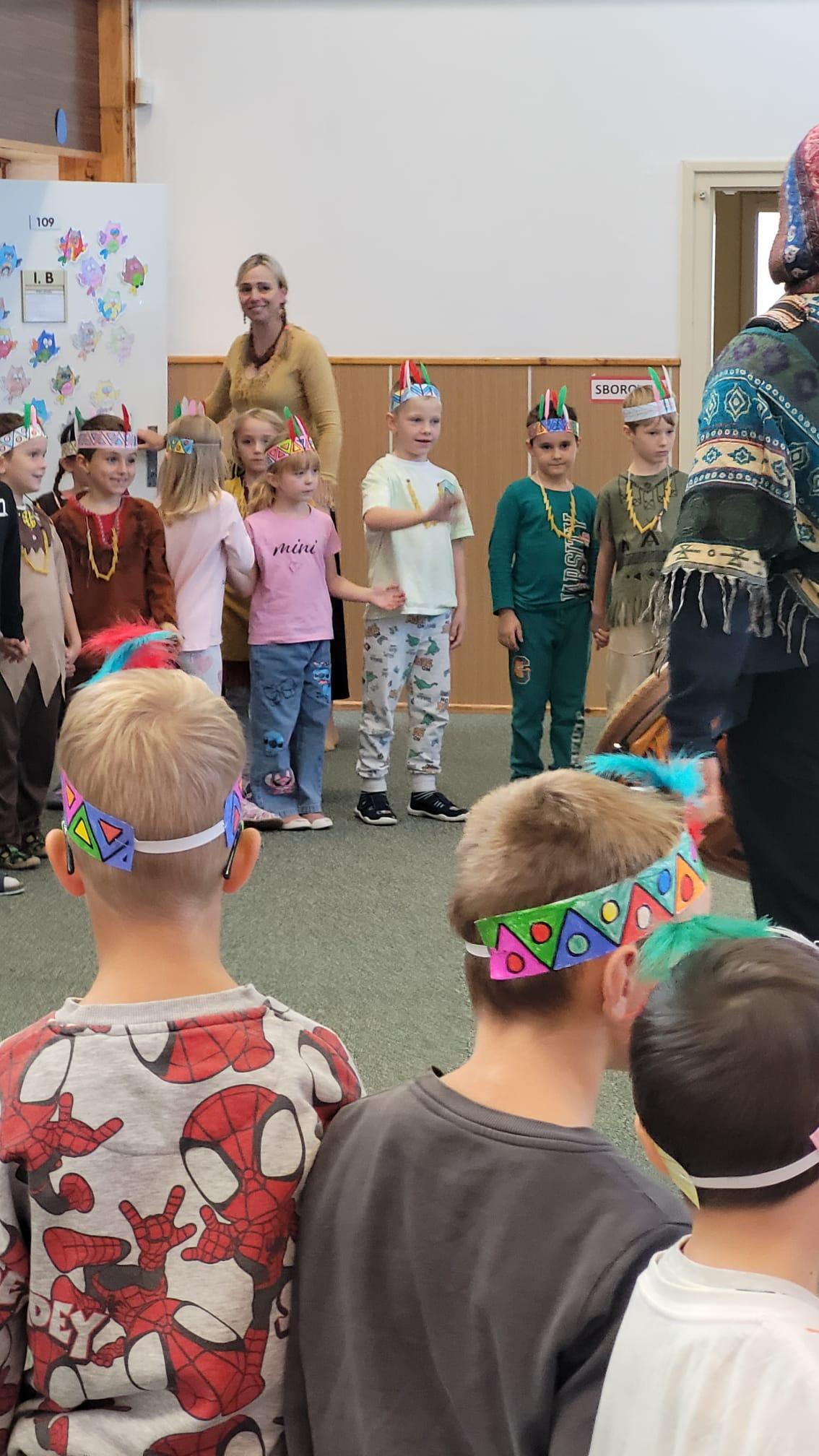 Od začátku školního roku už jsme se naučili spoustu nových věcí. Nejvíce jsme si zatím užili projektovou výuku na téma Indiáni. Učili jsme se písmenko I. Pracovali jsme ve dvojicích a vyzkoušely si i týmovou práci v „kmenech“. Vymýšleli jsme slova začínající na nové písmenko, přiřazovali slova k obrázku. Naučili jsme se říkanku a písničku o indiánech, vymýšleli si indiánská jména. V matematice jsme řešili obrázkové sudoku, počítali indiánské předměty a porovnávali jejich počty, luštili rébusy. Při výtvarné výchově jsme si společně vyrobili totem a při pracovních činnostech čelenku a náhrdelník. V tělocviku se nám všem podařilo překonat indiánskou stezku plnou různých překážek. Venku nás pak čekalo indiánské putování, kde jsme si vyzkoušeli svoje pozorovací schopnosti. Za všechny splněné úkoly jsme sbírali peříčka na své čelenky a za podařené týmové úkoly jsme získali pro svůj kmen obrázky s indiánskou tematikou. Vyvrcholením indiánského učení bylo setkání s prvňáčky z dalších tříd a společný zpěv i tanec za zvuků bubnu.