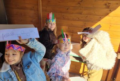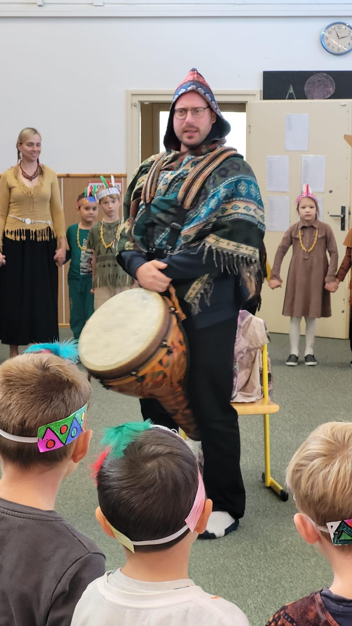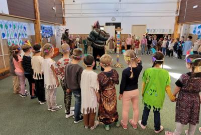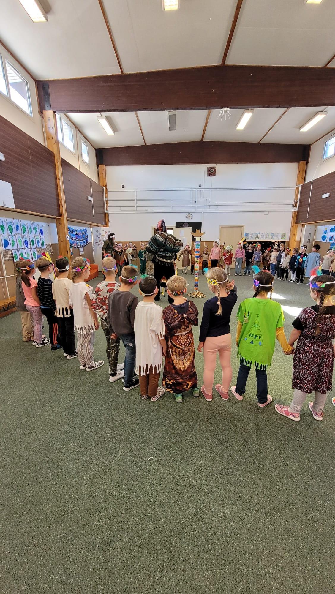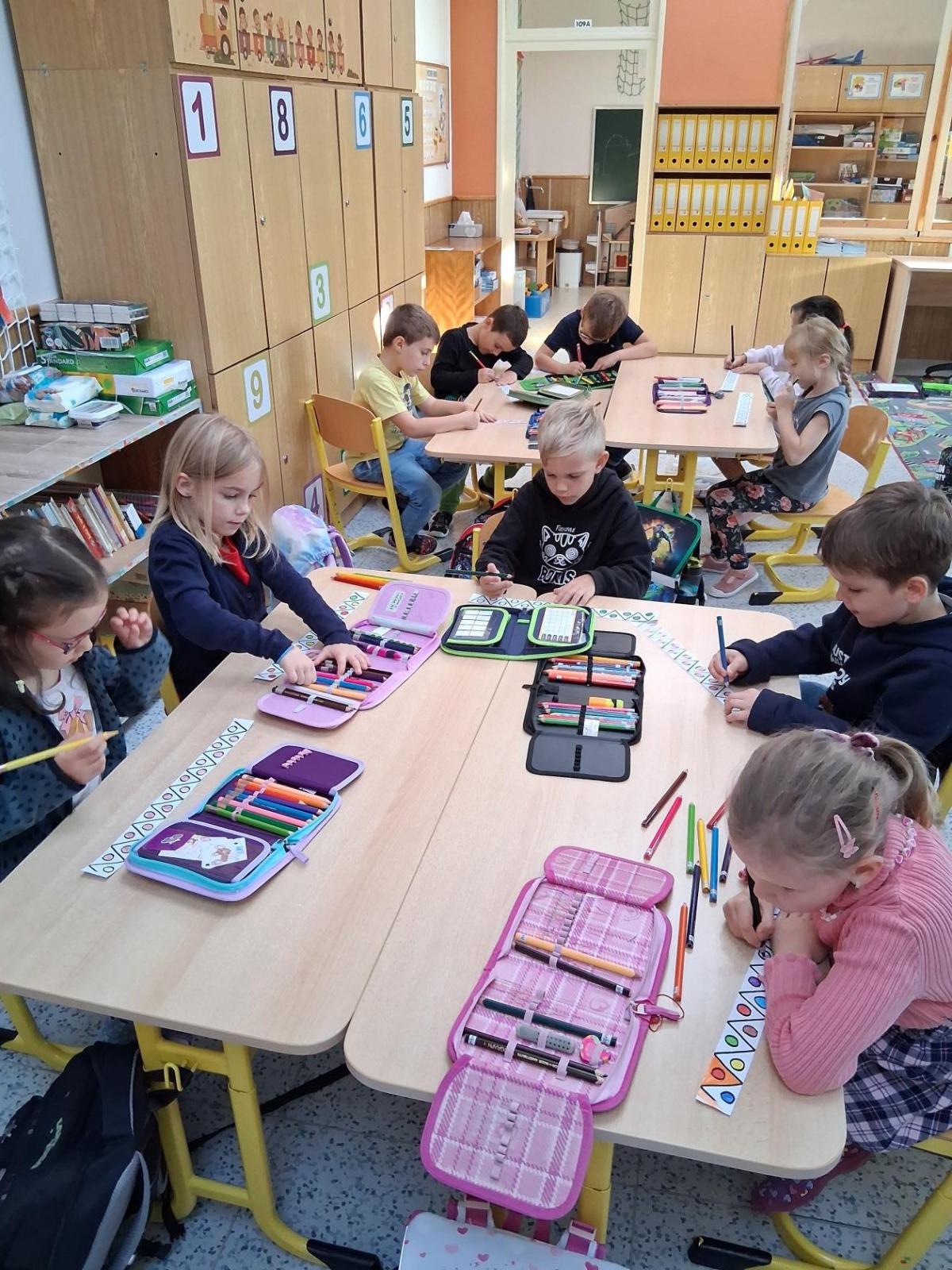 Od začátku školního roku už jsme se naučili spoustu nových věcí. Nejvíce jsme si zatím užili projektovou výuku na téma Indiáni. Učili jsme se písmenko I. Pracovali jsme ve dvojicích a vyzkoušely si i týmovou práci v „kmenech“. Vymýšleli jsme slova začínající na nové písmenko, přiřazovali slova k obrázku. Naučili jsme se říkanku a písničku o indiánech, vymýšleli si indiánská jména. V matematice jsme řešili obrázkové sudoku, počítali indiánské předměty a porovnávali jejich počty, luštili rébusy. Při výtvarné výchově jsme si společně vyrobili totem a při pracovních činnostech čelenku a náhrdelník. V tělocviku se nám všem podařilo překonat indiánskou stezku plnou různých překážek. Venku nás pak čekalo indiánské putování, kde jsme si vyzkoušeli svoje pozorovací schopnosti. Za všechny splněné úkoly jsme sbírali peříčka na své čelenky a za podařené týmové úkoly jsme získali pro svůj kmen obrázky s indiánskou tematikou. Vyvrcholením indiánského učení bylo setkání s prvňáčky z dalších tříd a společný zpěv i tanec za zvuků bubnu.