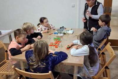 Pekli jsme si linecké cukroví ze světlého a tmavého těsta. Zkoušeli si ozdobně zabalit kostku cukru k zavěšení na stromeček. U čaje s vánočkou jsme si povídali o vánočních tradicích. Nejvíce nás ale bavila výroba sněžítka. Každý z nás přilepil do skleničky malý stromeček, opatrně jsme přidali destilovanou vodu, glycerin a třpytky a sklenici uzavřeli. Po zatřepání se třpytky krásně snášejí na stromeček. Celé dopoledne pro nás bylo nezapomenutelným zážitkem.