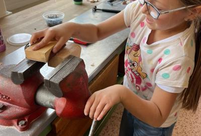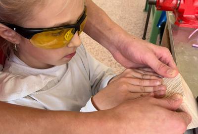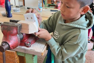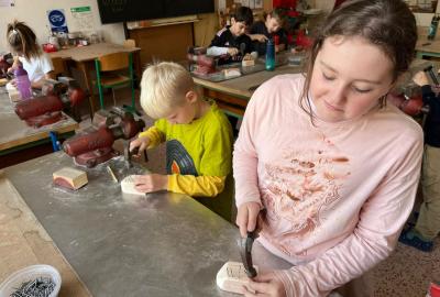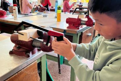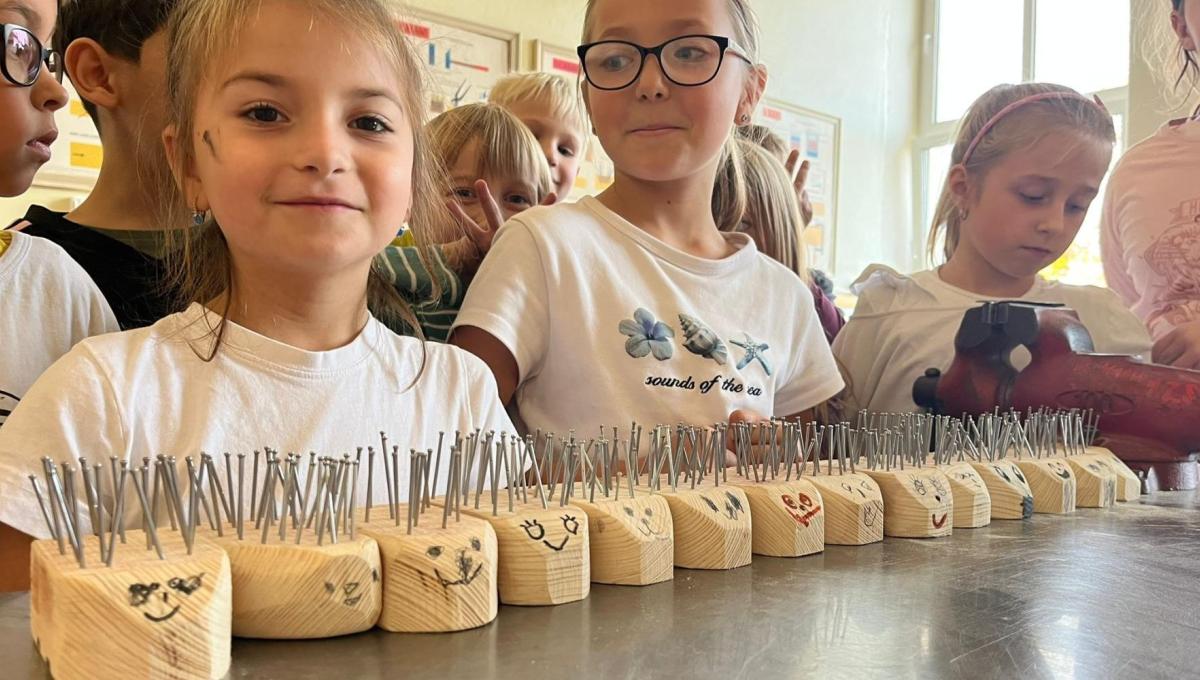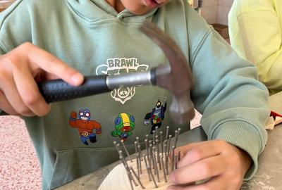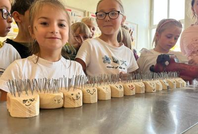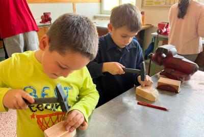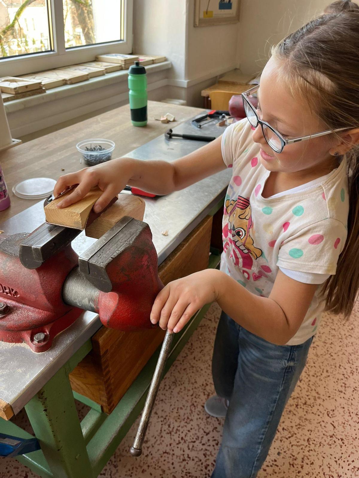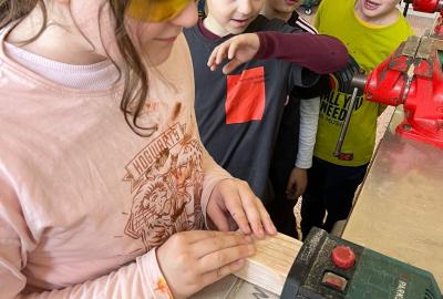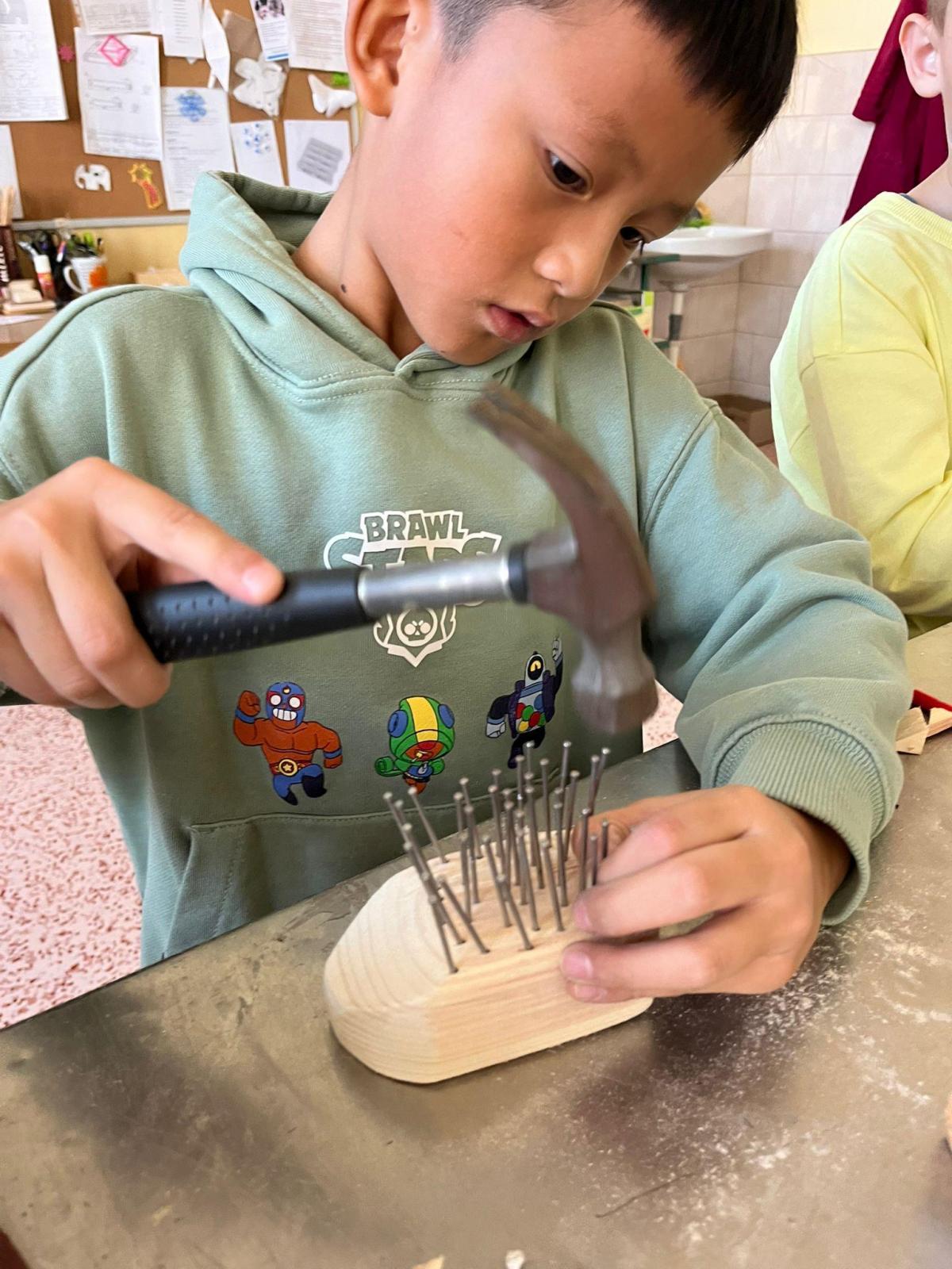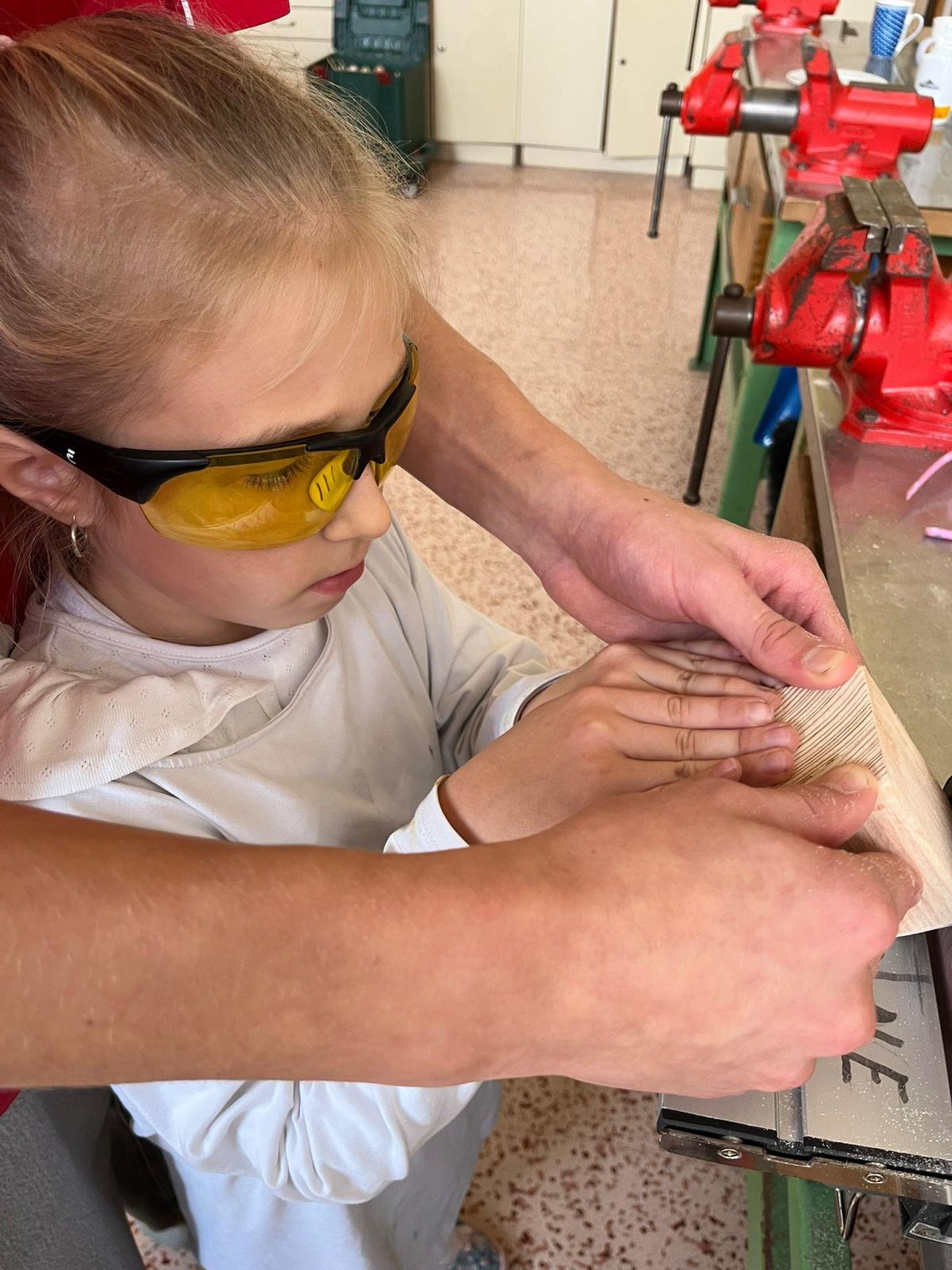 V pátek 31. října jsme se neučili ve třídě, ale šli jsme do školní dílny. Čekal tam na nás pan Oldřich Kysela a jeho syn. Na pracovním stole měl každý připravené nářadí – kladívko, pilku, svěrák a dřevěný materiál. Na dalším stole stála bruska a vrták. Nejprve jsme si pozorně vyslechli bezpečnostní pokyny a jak pracovat s nářadím. Nakonec jsme se dozvěděli, co budeme vyrábět a také pracovní postup.