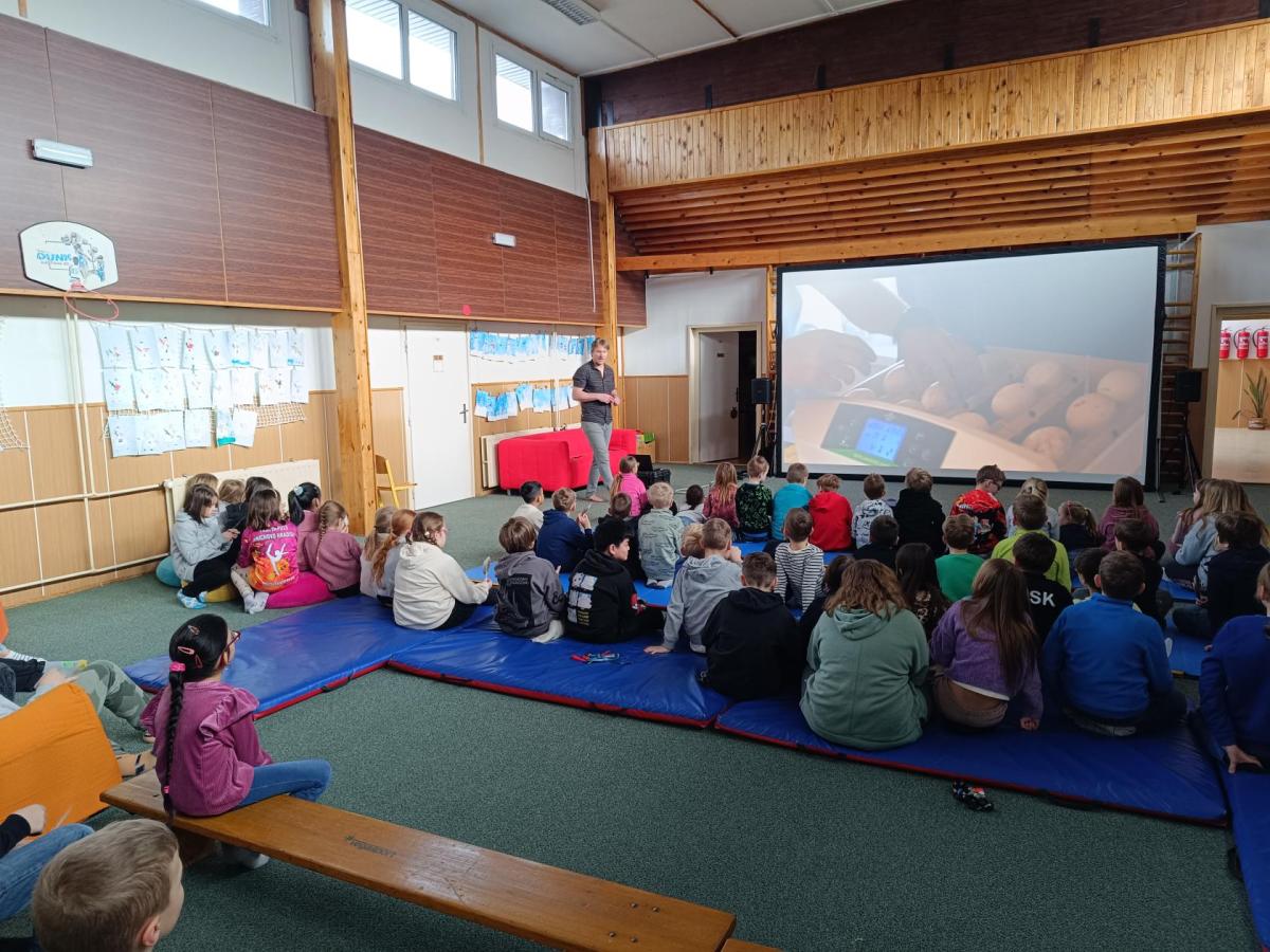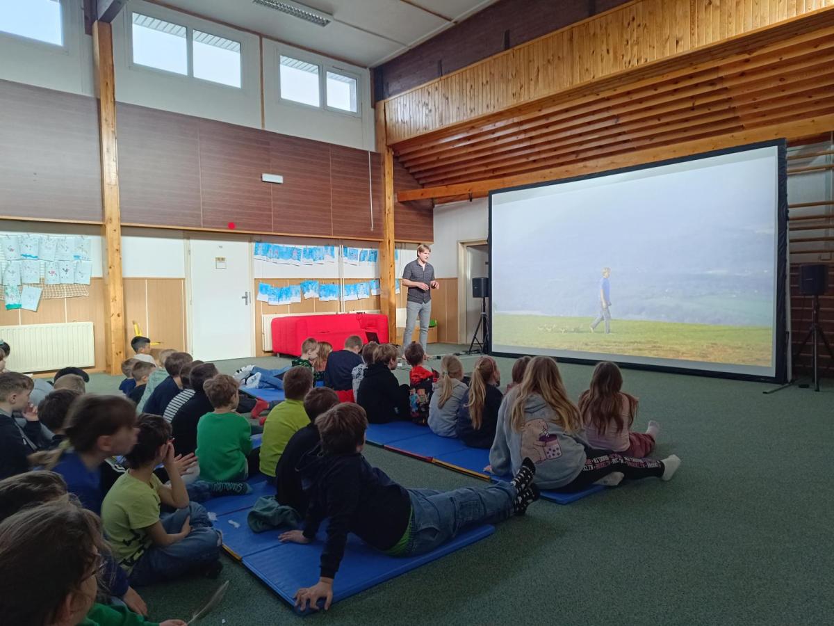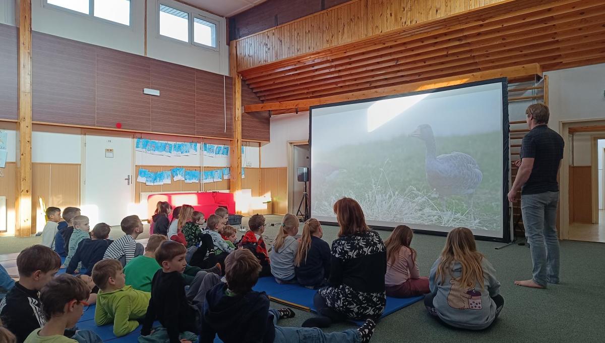 Měli jsme příležitost zúčastnit se promítání a besedy pana Bednaříka, který strávil rok se svými husami. Dozvěděli jsme se, jak se housátka líhnou z vajíček, a co všechno se musí naučit, než na podzim odlétnou do teplých krajin.