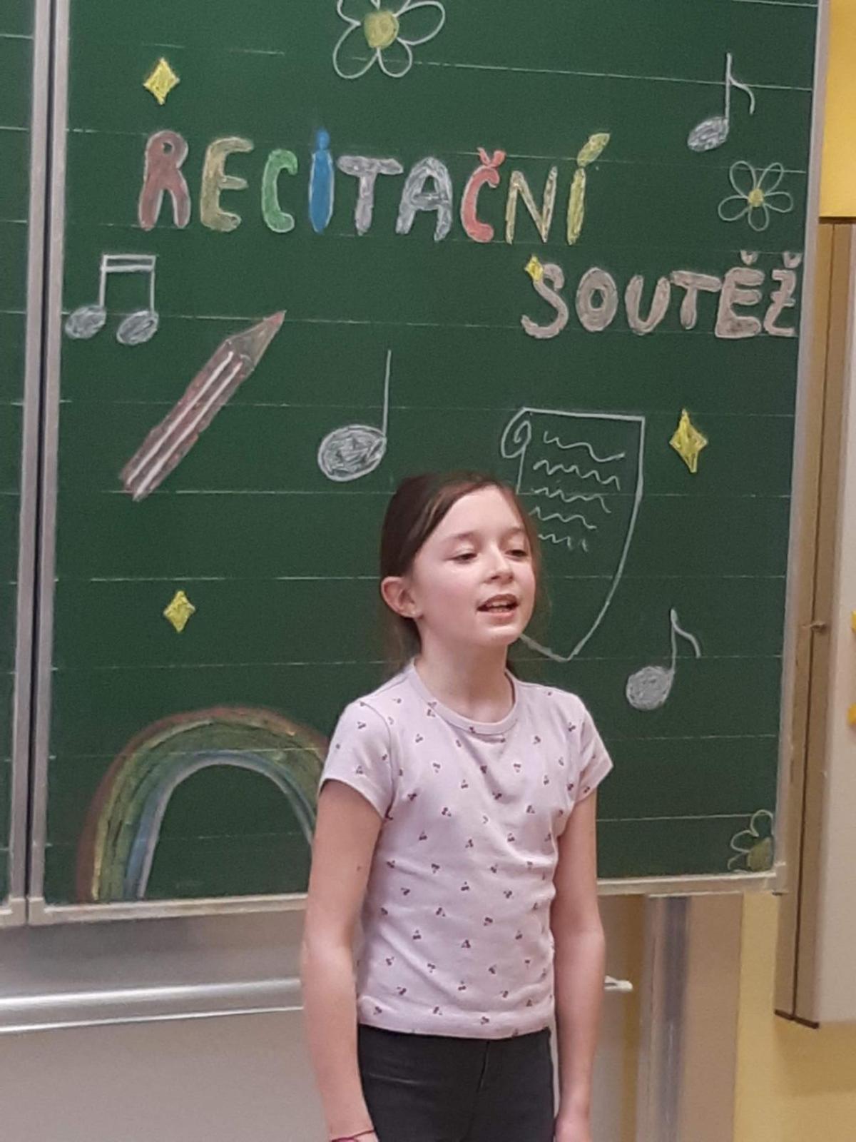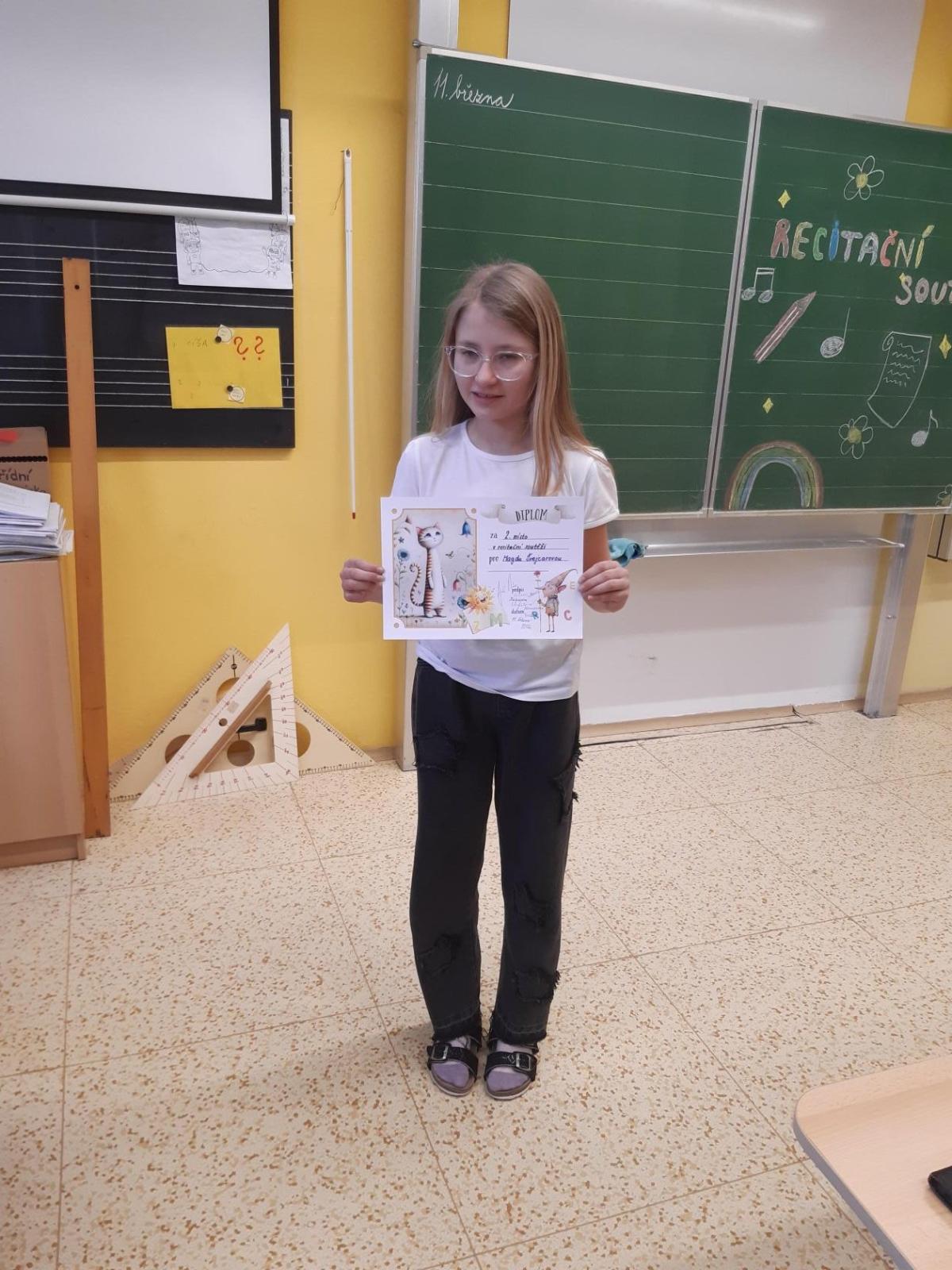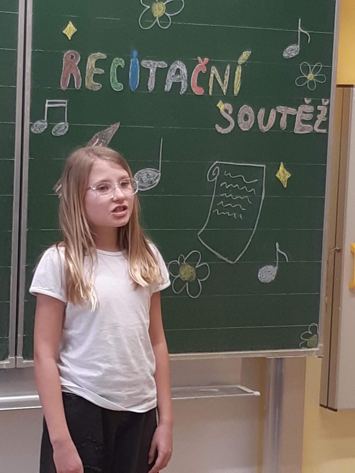 Ve školním kole v recitaci se zúčastnily z naší třídy Magda Š., Dorota D. a Anička B. Magda se umístila na 2. místě. Dívkám moc děkujeme.