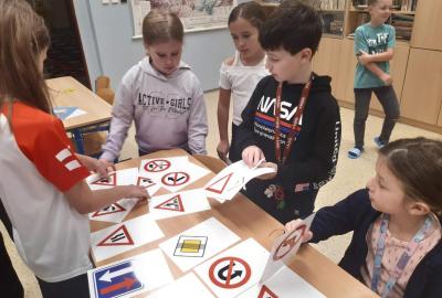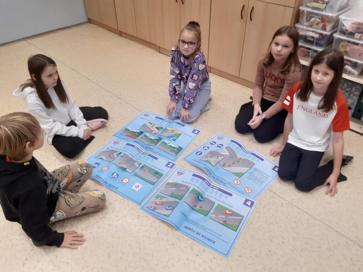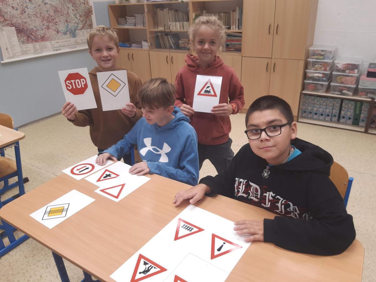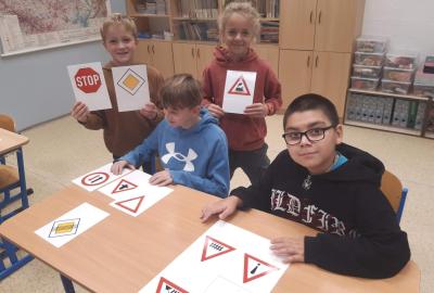 Dopravní výuka začala dětem tento měsíc zatím jen výukou ve škole. Témata byla: chodec, cyklista, dopravní značky a křižovatky. Tedy to, s čím se děti setkávají každý den. Nejprve pan policista vysvětlil slovo BESIP, kdo je účastník silničního provozu, jak se má chovat a jaká pravidla dodržovat. Děti se dozvěděly, jak správně jezdit na kole, jaké mají mít bezpečnostní prvky a vybavené kolo. Hodně děti zaujalo téma, jak ve tmě vidí řidič auta člověka v černém a světlém oblečení a jak člověka s bezpečnostními prvky. Děti se naučily třídit značky a pan policista vysvětlil jejich význam. Konec celého dopoledne byl věnován křižovatkám a práci na interaktivní tabuli. Už teď se děti těší na další část – na jízdu na dopravním hřišti a získání průkazu mladého cyklisty. Děkujeme Městské policii v Mnichově Hradišti a panu Ondřejovi Hochmalovi.