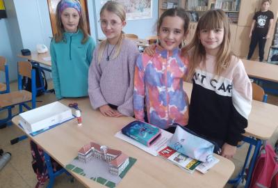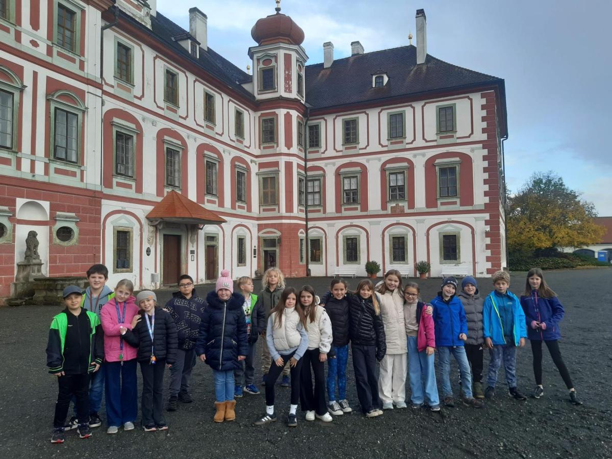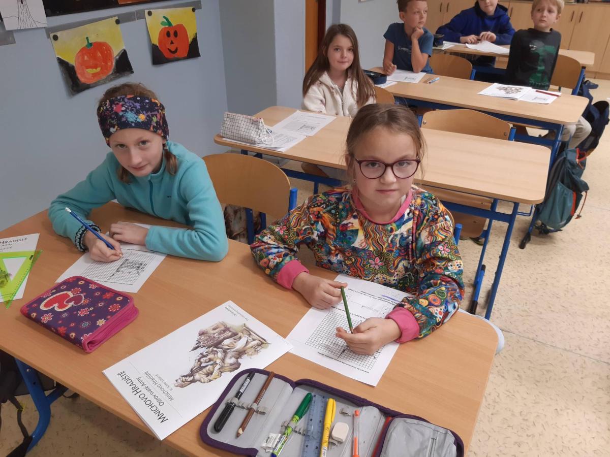 Nejprve jsme navštívili zámek v Hradišti. Paní průvodkyně nám velmi poutavě vyprávěla o zámku a odpovídala na naše dotazy. Ve škole jsme pak dostali omalovánky a pracovní listy. Čekalo nás „běhací doplňování“, tvoření otázek a odpovídání na ně, vyprávění o dalších zajímavostech ve městě, zámecké počítání, magický čtverec a pak pomyslné otevírání zámeckých dveří – to jsme dostali vystřihovánku našeho zámku. To bylo dost obtížné, ale snažili jsme se. Další den jsme se vydali na seznámení s horninami a minerály, které bychom nalezli v okolí Hradiště. Stačilo ale dojít jen k ZŠ Studentská. Pohybová hra Evoluce a krátké tematické filmy nás moc bavily.