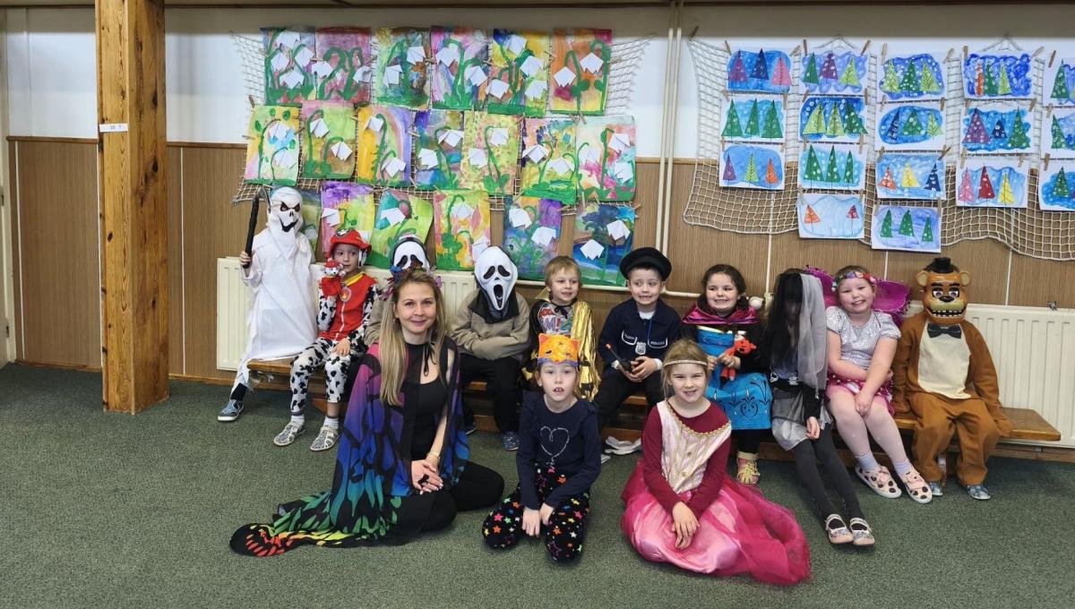 Na konci února se konal ve škole karneval plný barevných masek a kostýmů. Děti tančily, soutěžily a hrály různé hry. Moc jsme si to užili.